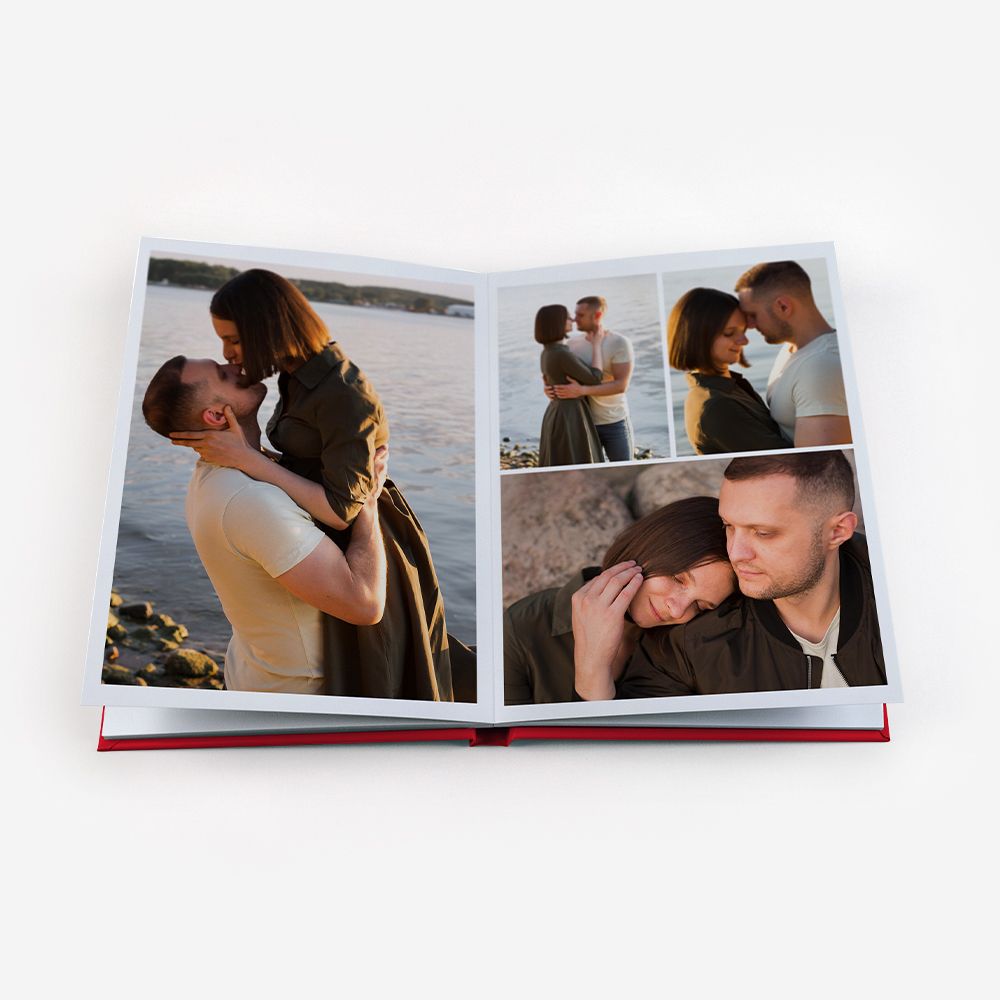 Os Álbuns de Fotos Dreambooks apresentam uma abertura panorâmica, com a possibilidade de colocar uma foto em destaque ocupando duas páginas. Dessa forma, desfrutará de uma visualização perfeita das suas fotos, sem cortes ou partes escondidas.