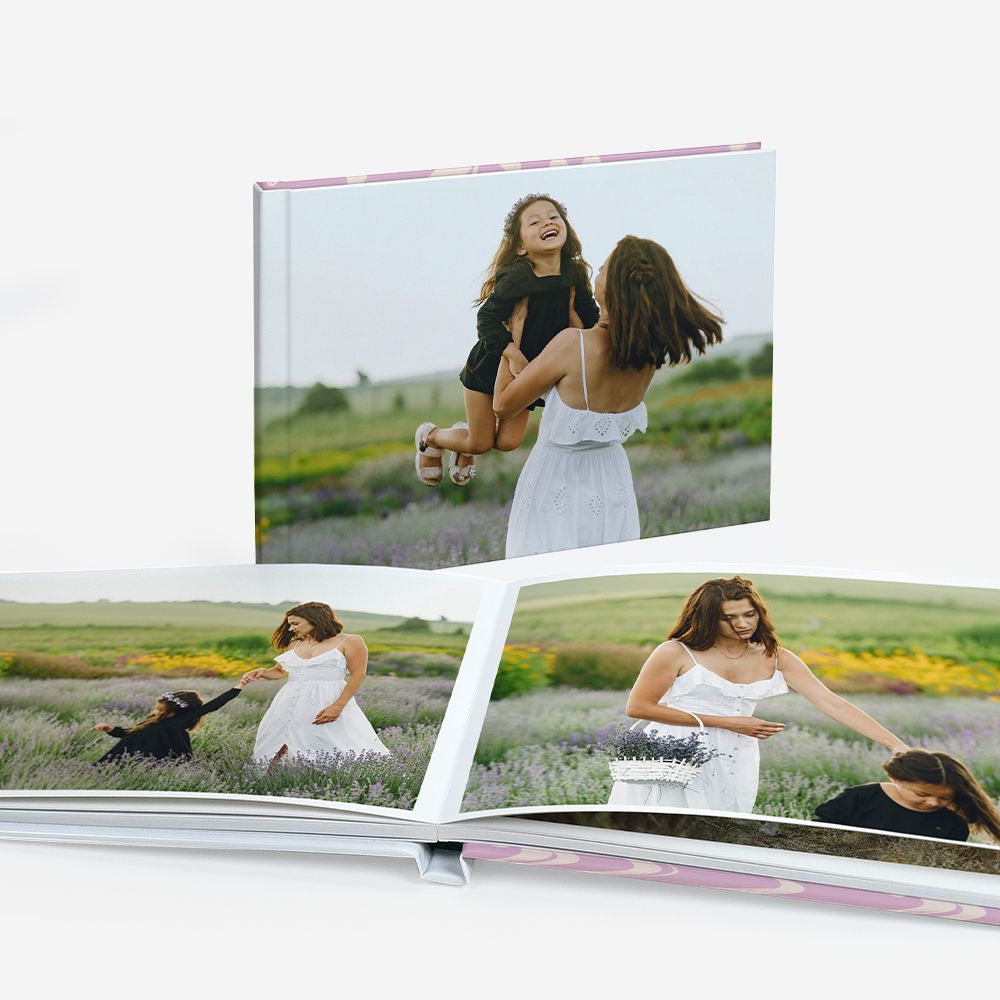 Os Álbuns de Fotos Dreambooks apresentam uma abertura panorâmica, com a possibilidade de colocar uma foto em destaque ocupando duas páginas. Dessa forma, desfrutará de uma visualização perfeita das suas fotos, sem cortes ou partes escondidas.