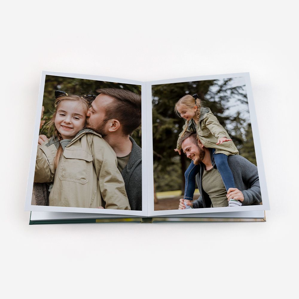 Os Álbuns de Fotos Dreambooks apresentam uma abertura panorâmica, com a possibilidade de colocar uma foto em destaque ocupando duas páginas. Dessa forma, desfrutará de uma visualização perfeita das suas fotos, sem cortes ou partes escondidas.