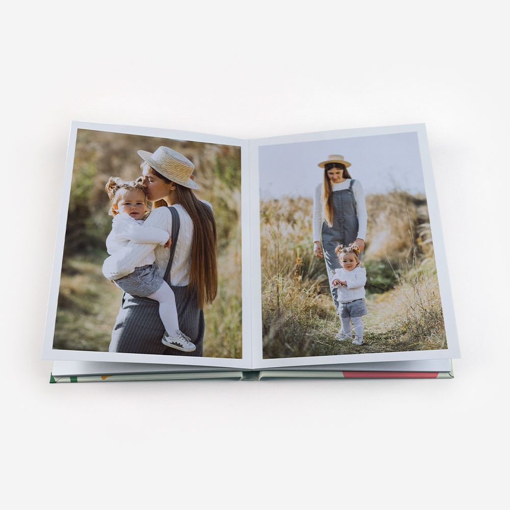 Os Álbuns de Fotos Dreambooks apresentam uma abertura panorâmica, com a possibilidade de colocar uma foto em destaque ocupando duas páginas. Dessa forma, desfrutará de uma visualização perfeita das suas fotos, sem cortes ou partes escondidas.