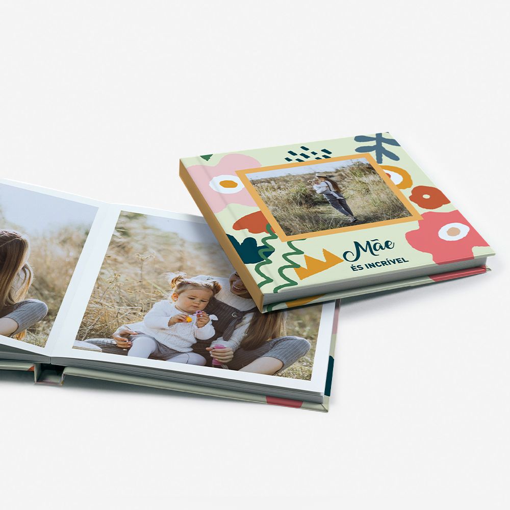 A capa rígida em cartão duro oferece proteção robusta e um acabamento premium, mantendo suas memórias seguras por muitos anos.