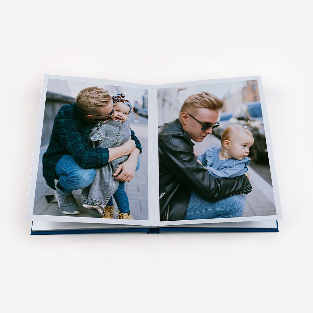 Os Álbuns de Fotos Dreambooks apresentam uma abertura panorâmica, com a possibilidade de colocar uma foto em destaque ocupando duas páginas. Dessa forma, desfrutará de uma visualização perfeita das suas fotos, sem cortes ou partes escondidas.