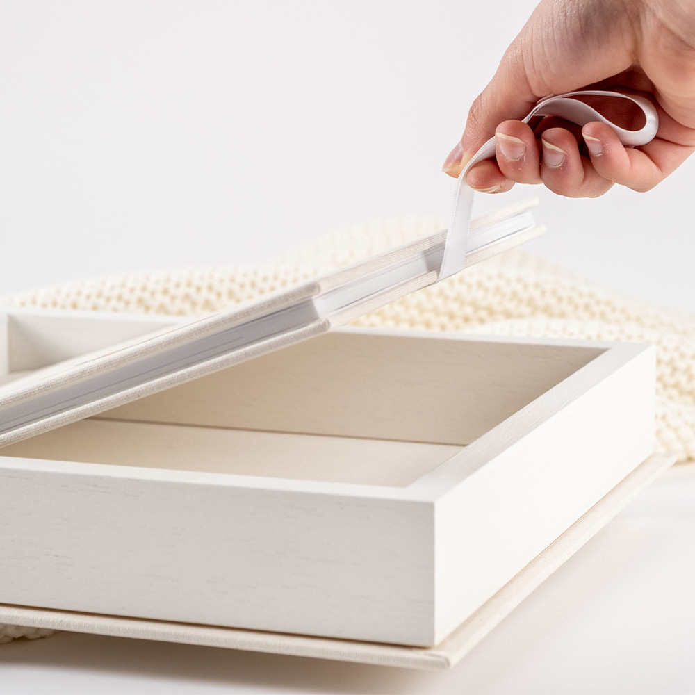 As Boxes podem ser escolhidas nas cores preto ou branco, permitindo uma combinação elegante com qualquer estilo de álbum ou evento.